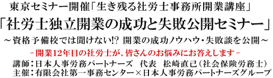 『社労士独立開業の成功と失敗公開セミナー』と題しまして独立支援